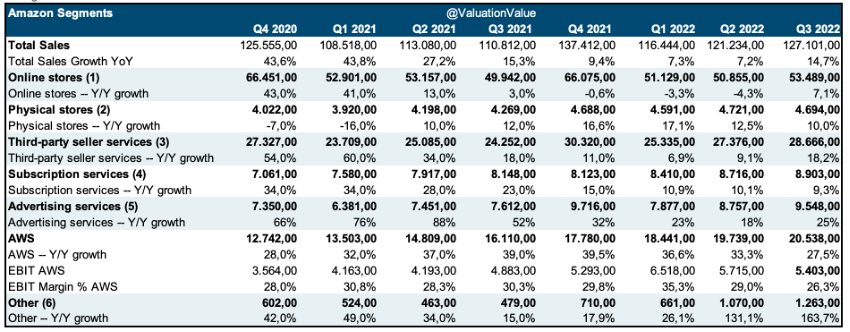 No obstante, estos crecimientos del 15% hay que relativizar debido a que en el Q3’22 se llevó a cabo el Prime Day, algo que en 2021 fue en el Q2, el impacto extra por las ventas del Prime Day fue de 400pbs, por tanto, ajustando la cifra por el extra de Prime Day sería un crecimiento del 10,7% YoY.