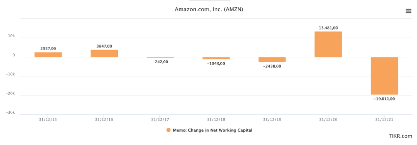 Esto se ve mejor en una imagen, vemos como los cambios en el Working Capital han desvariado desde la pandemia por los problemas en la cadena de suministro y acopio de inventarios, esto está haciendo que reduzca su generación de FCF, esperan que comience a normalizarse en 2023.