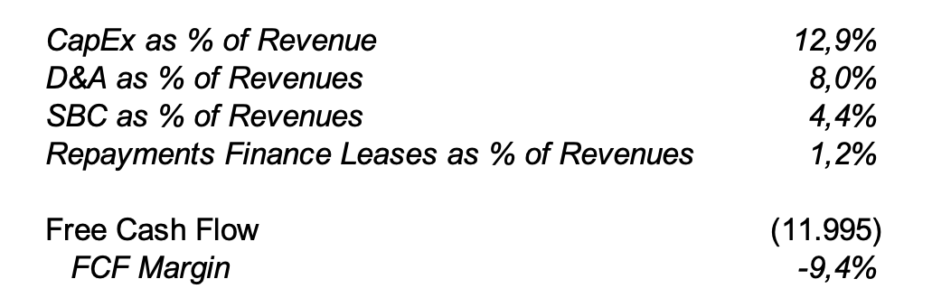 El FCF continúa siendo negativo en (12bn$) para este trimestre, el año pasado en (38bn$) y posiblemente para el año completo continúe esta tendencia